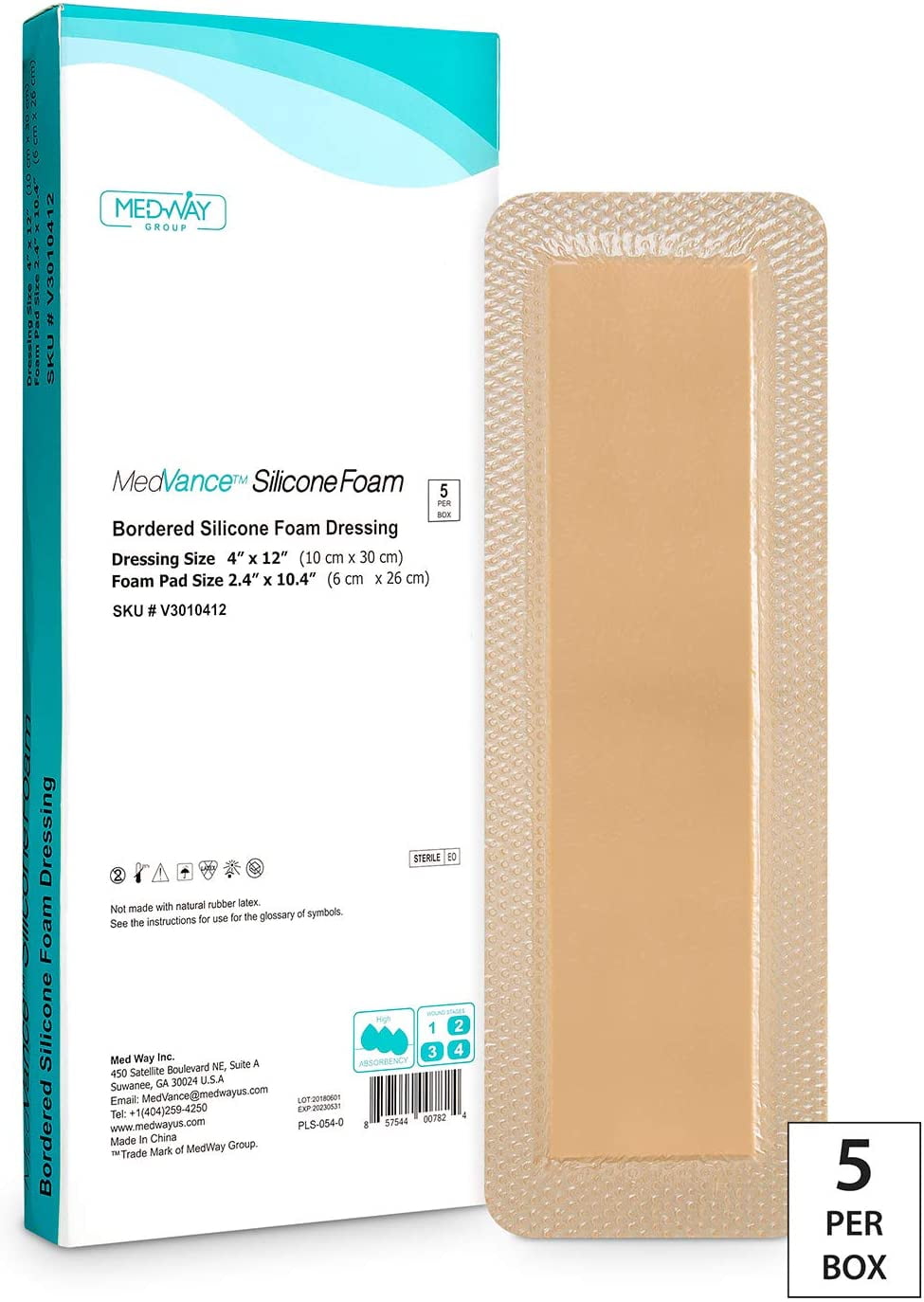 Medvancetm Silicone Bordered Silicone Adhesive Foam Dressing Size 4 X 12 2 4 X10 4 Pad Box Of 5 Dressings Walmart Com
