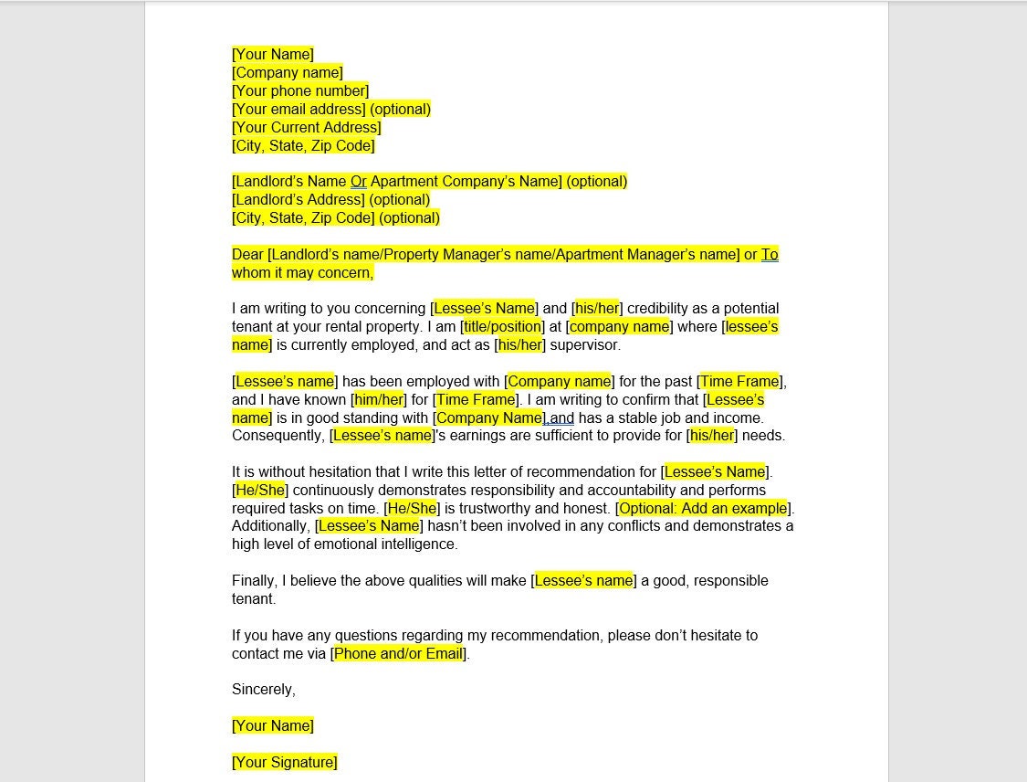 How To Write A Rental Reference Letter Templates Samples