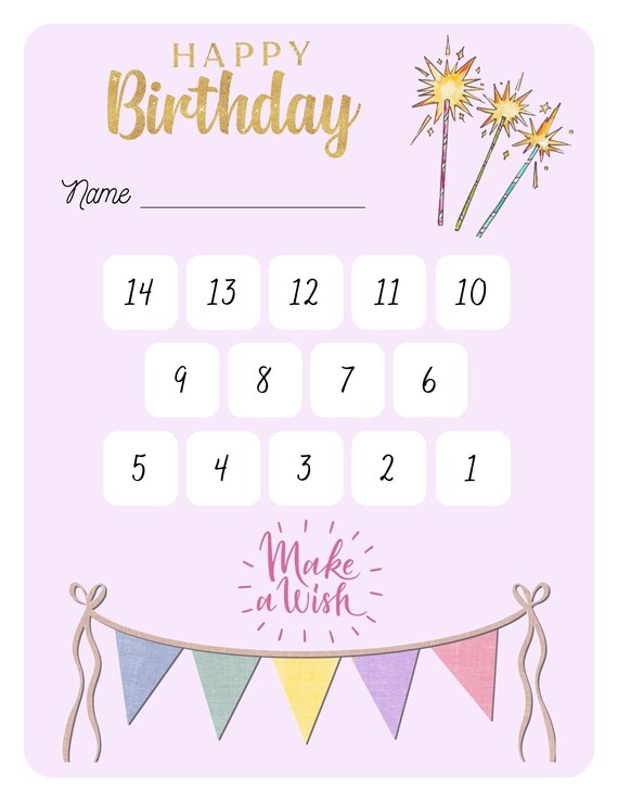 Happy Birthday Countdown Calendar For Kids Celebrate Interactive Counting Birthday Activity Learning Numbers Etsy